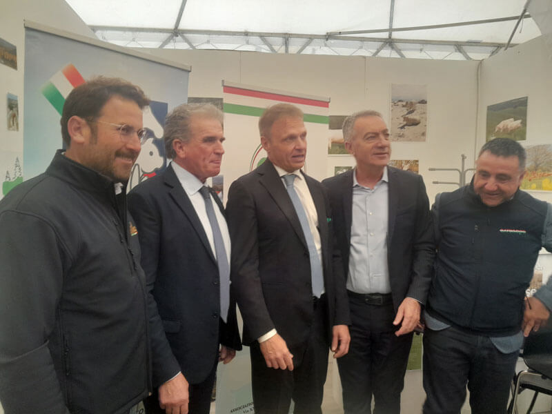 La giornata inaugurale della 54esima “Agriumbria”, in programma a Bastia Umbra (Perugia) da venerdì 31 a domenica 2 aprile 2023 ha decretato il successo dell’esordio della manifestazione quale ‘Polo delle Carni Italiane’. La prima novità, al taglio del nastro inaugurale, è stata la presenza di ben due Ministri dell’attuale Governo, la titolare del ministero del Lavoro, Marina Elvira Calderone, ed il responsabile Masaf, Francesco Lollobrigida. In particolare quest’ultimo, dopo aver dato merito allo sforzo del neo presidente di Umbriafiere, Stefano Ansideri e degli amministratori locali, in primis la sindaco di Bastia Umbra Paola Lungarotti e la presidente della Regione Umbria, Donatella Tesei, che grazie a un lavoro di squadra hanno portato la Mostra dell’Agricoltura, della Zootecnia e dell’Alimentazione a confermare la sua rilevante dimensione nazionale, si è intrattenuto a lungo con gli allevatori, nello stand A.I.A. e nell’area Italalleva, accompagnato dal presidente dell’Associazione Italiana Allevatori, Roberto Nocentini, dal direttore generale Mauro Donda, dai presidenti di FedAna Battista Cualbu e dell’Associazione Allevatori Umbria e Marche Fabrizio Soro e dal presidente e dai direttore di Coldiretti Umbria, Albano Agabiti e Mario Rossi.